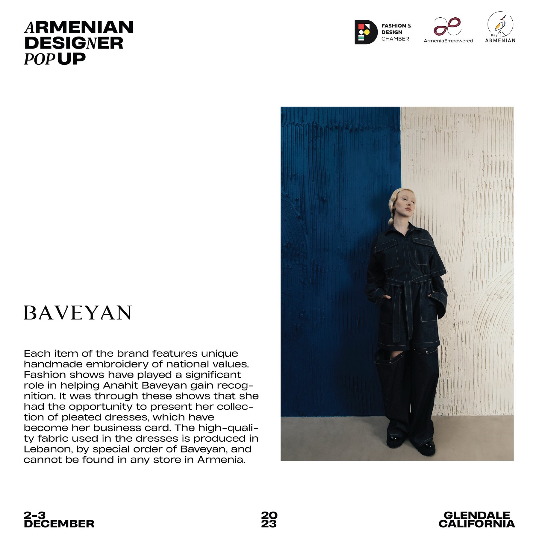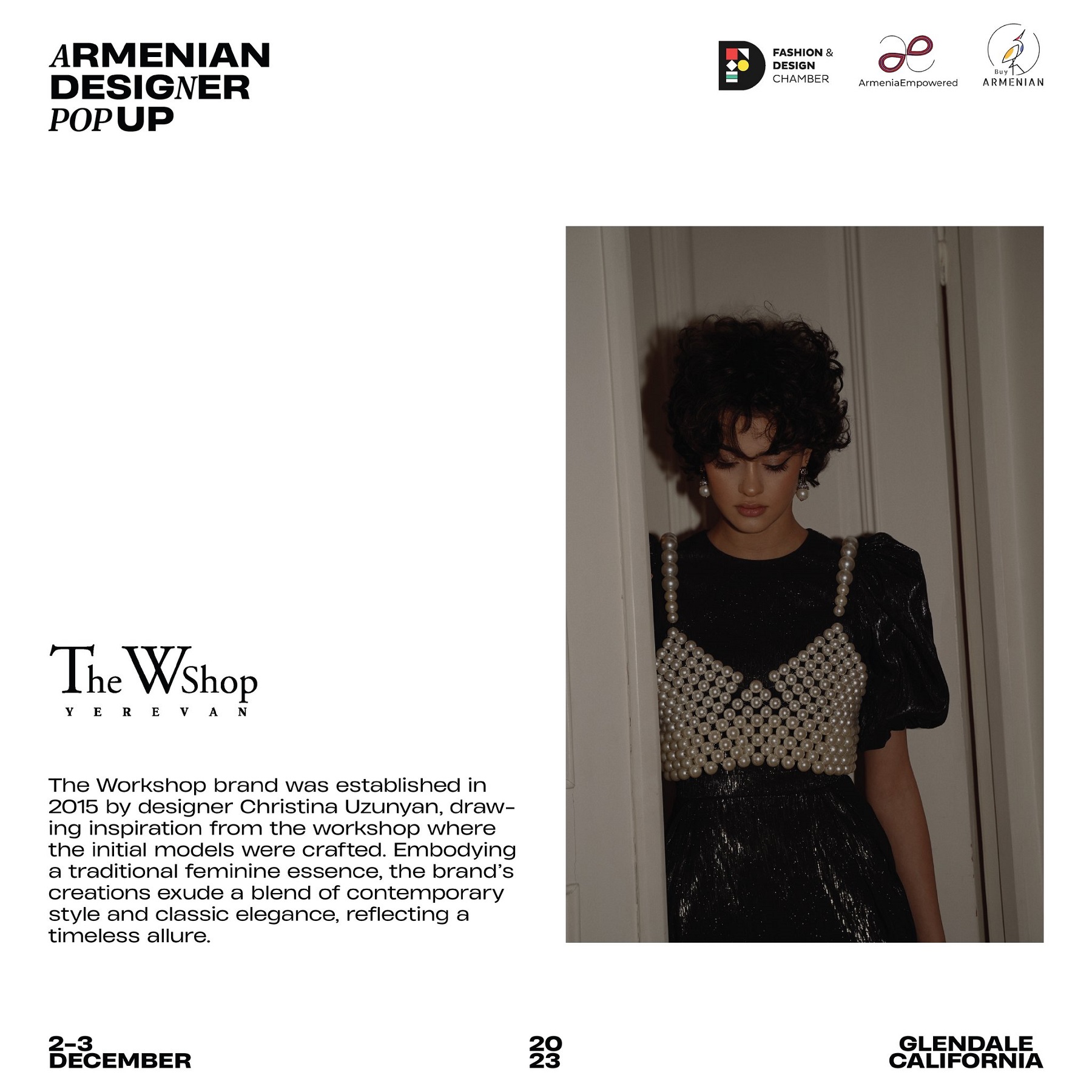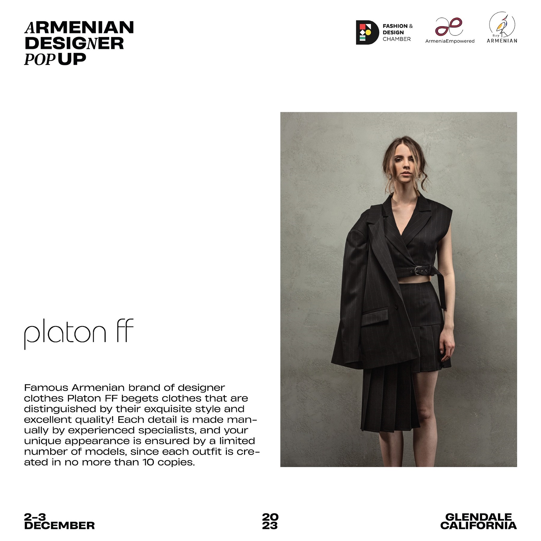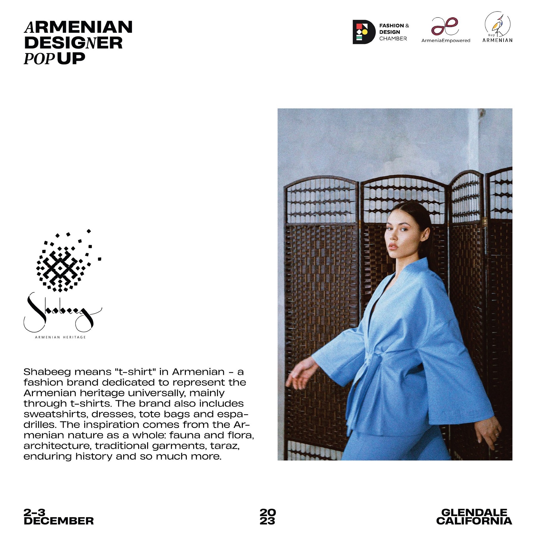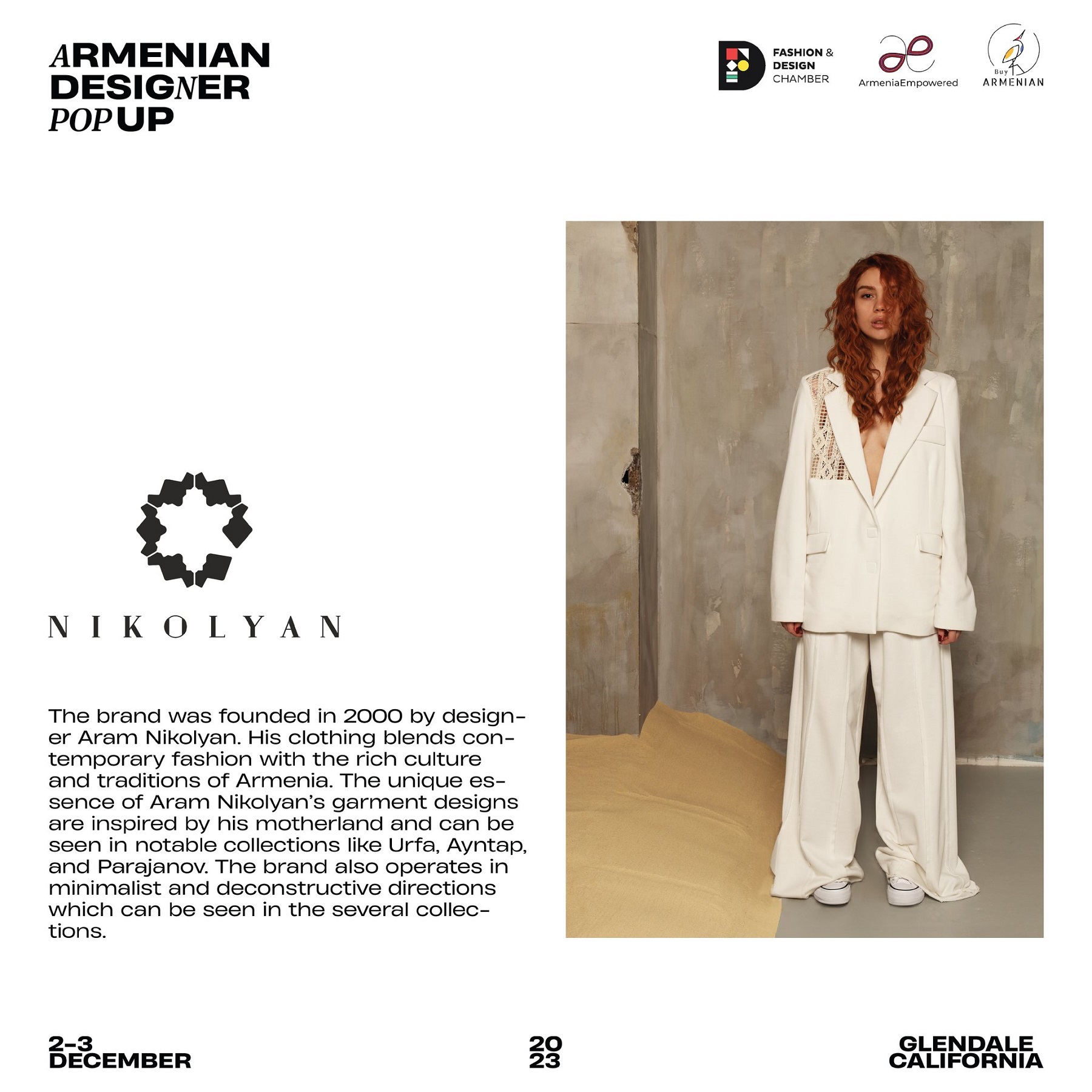 Armenian Fashion Takes Stage in the Heart of California! Date: December 2 & 3, 2023 Location: SOLAR STUDIOS, 3909 San Fernando Rd. Suite 114, Glendale, CA 91204. This event will bring together over 35 of Armenia's most talented designers. Meet your favorite designers and make unforgettable memories during weekend. Tickets are available here: https://www.eventbrite.com/.../armenian-designer-pop-up...