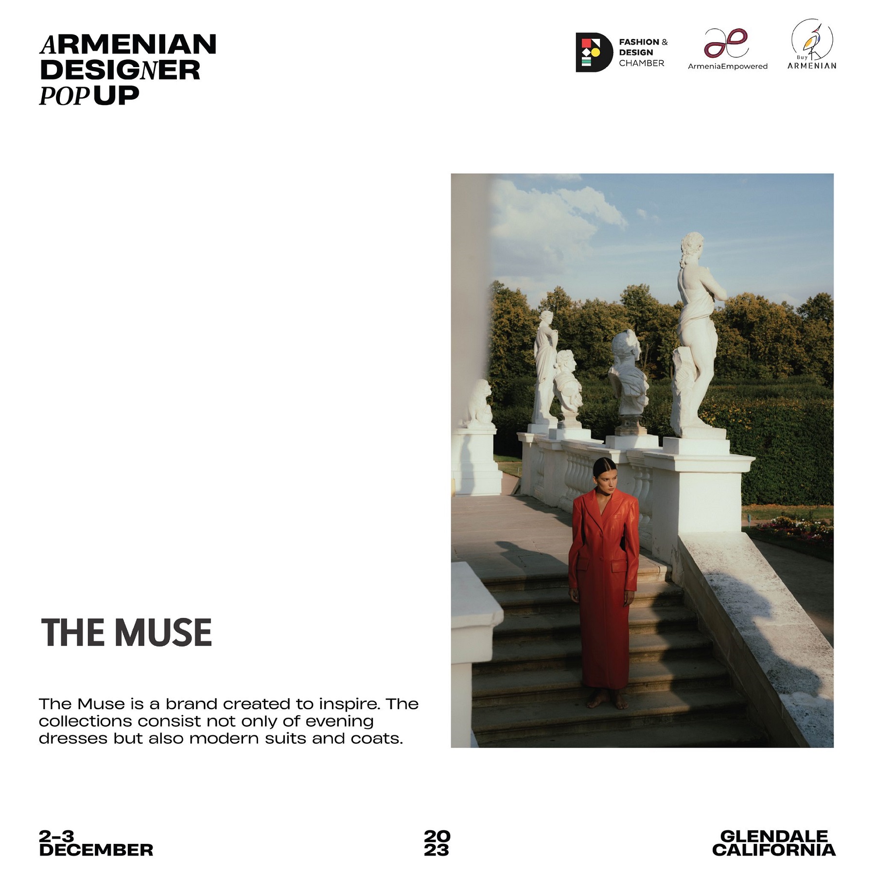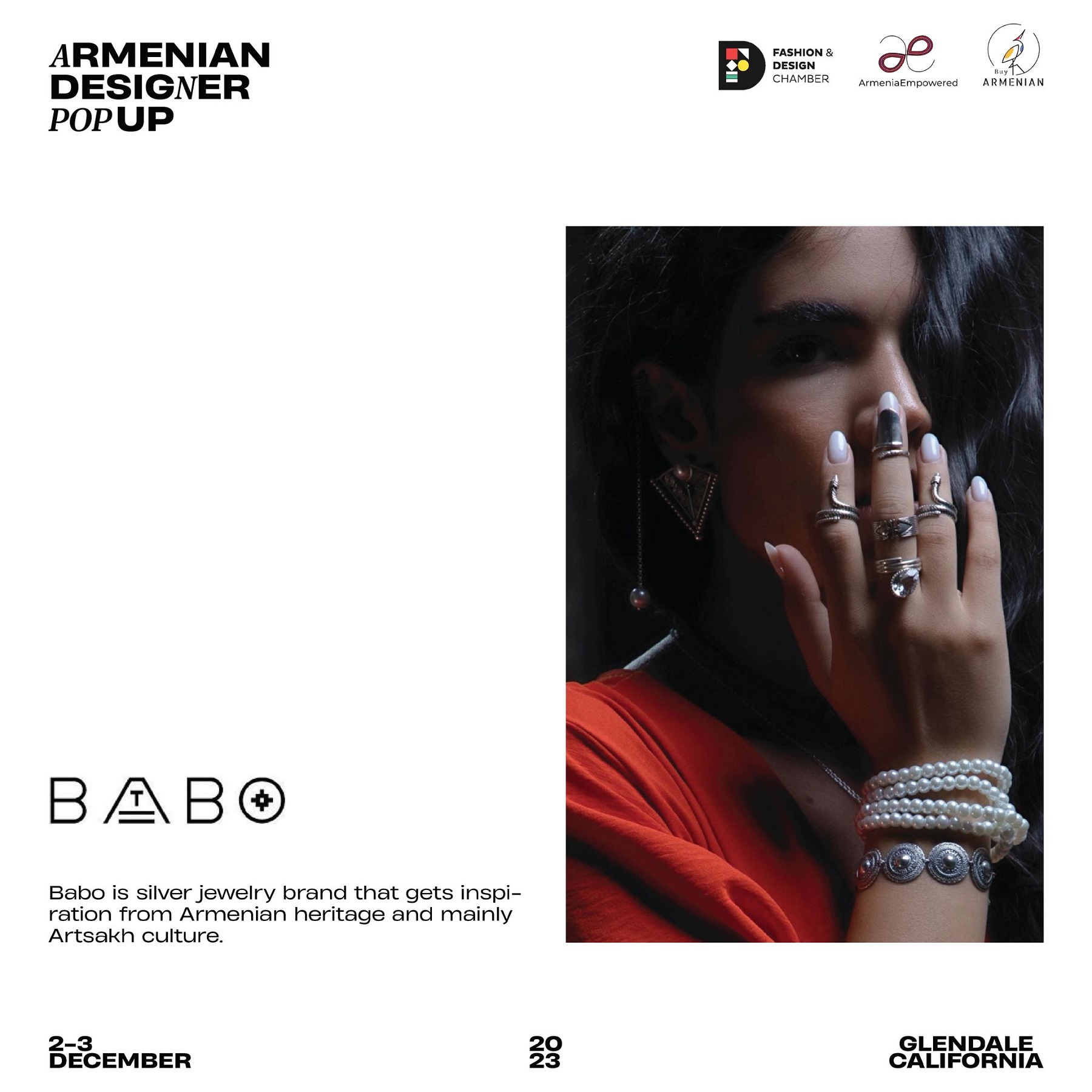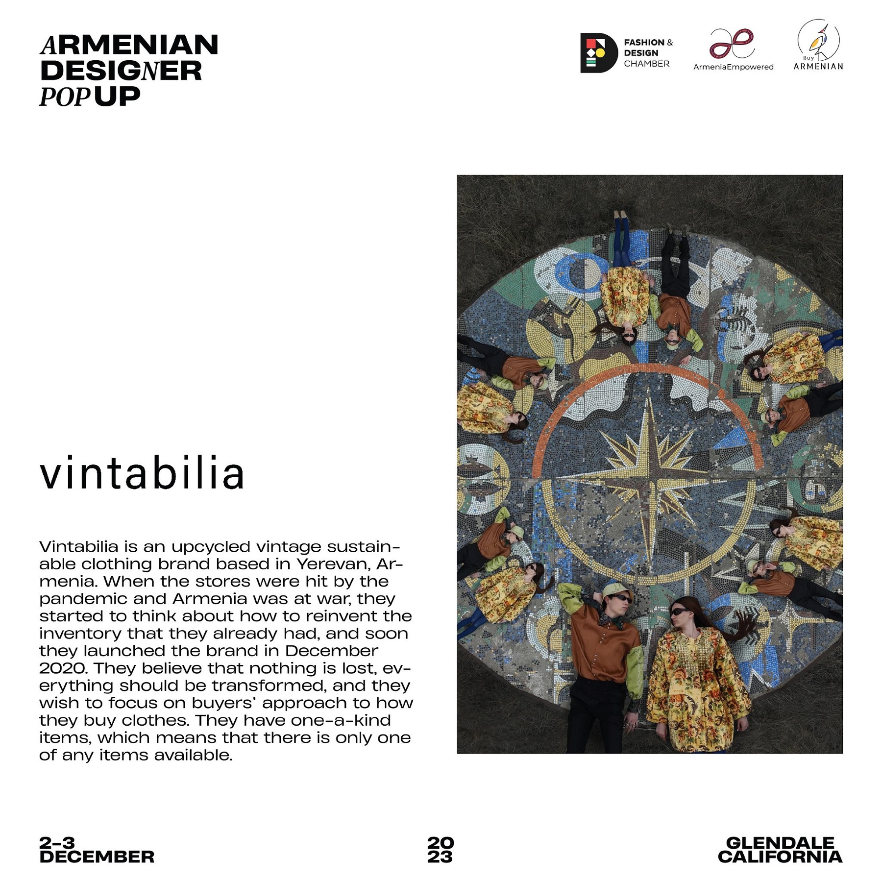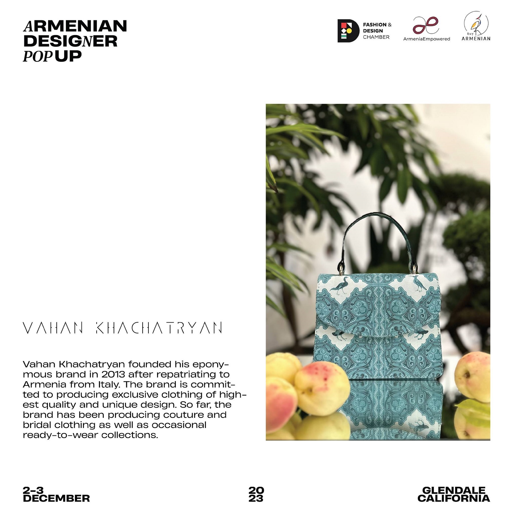 Armenian Fashion Takes Stage in the Heart of California! Date: December 2 & 3, 2023 Location: SOLAR STUDIOS, 3909 San Fernando Rd. Suite 114, Glendale, CA 91204. This event will bring together over 35 of Armenia's most talented designers. Meet your favorite designers and make unforgettable memories during weekend. Tickets are available here: https://www.eventbrite.com/.../armenian-designer-pop-up...