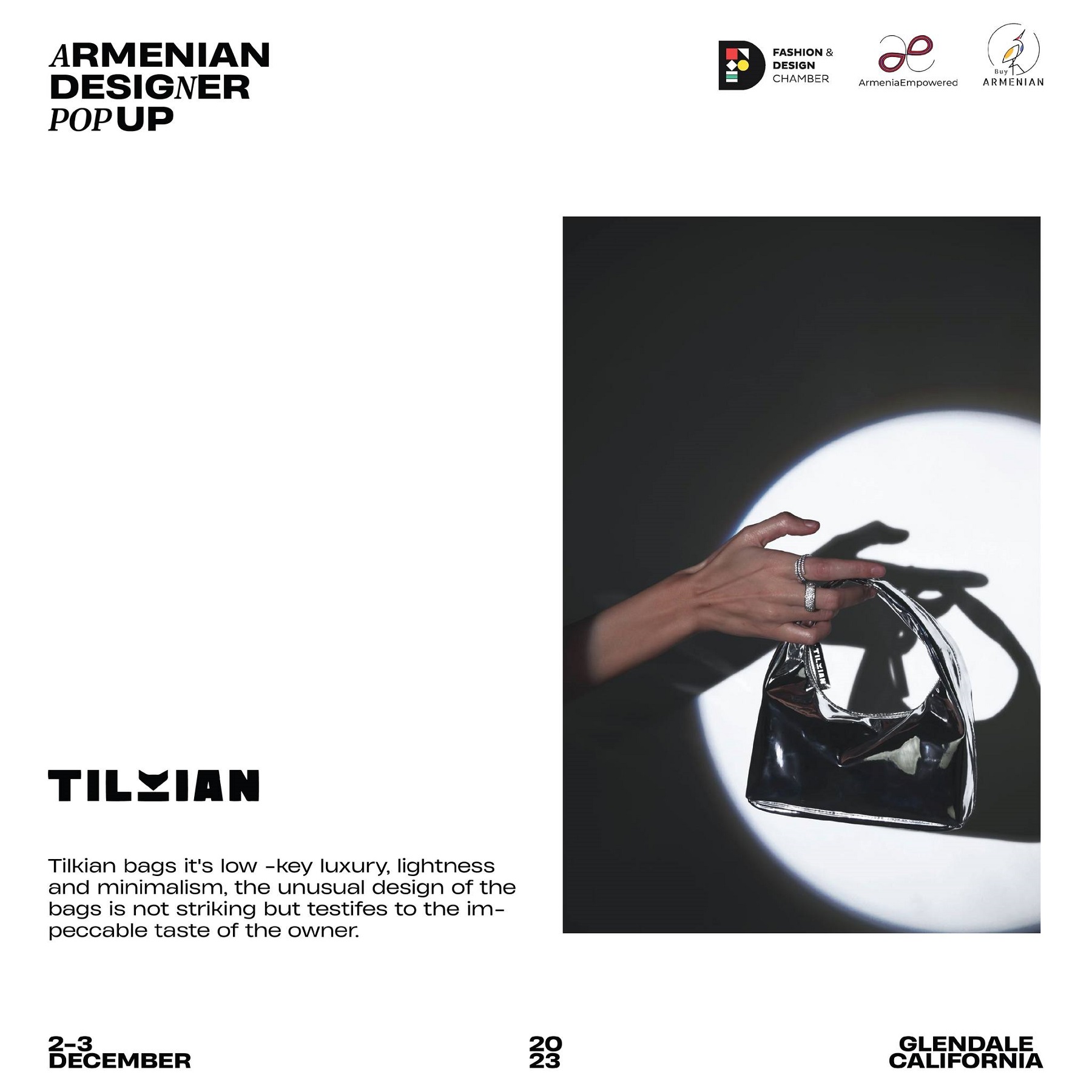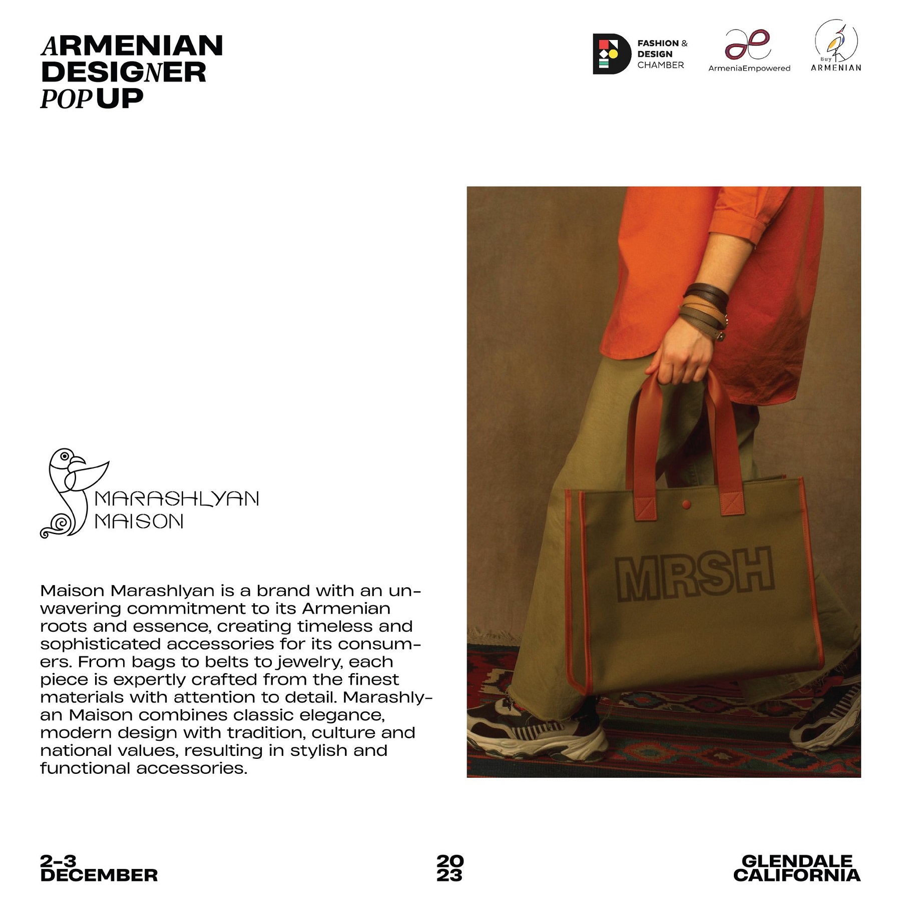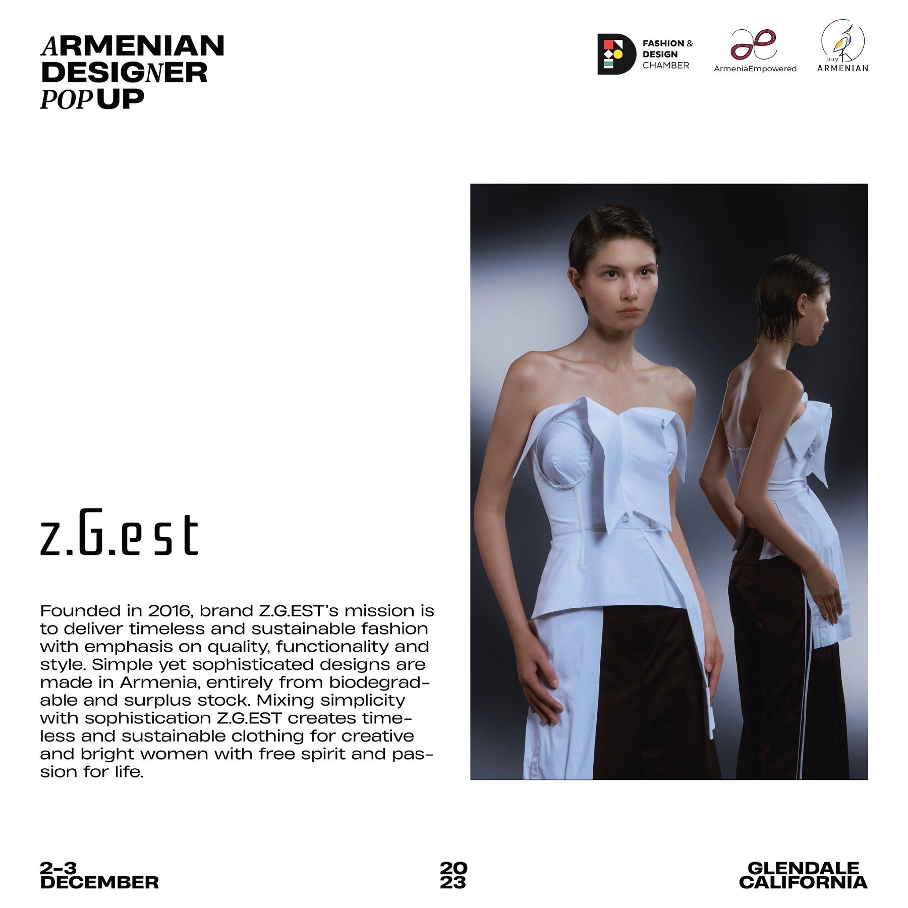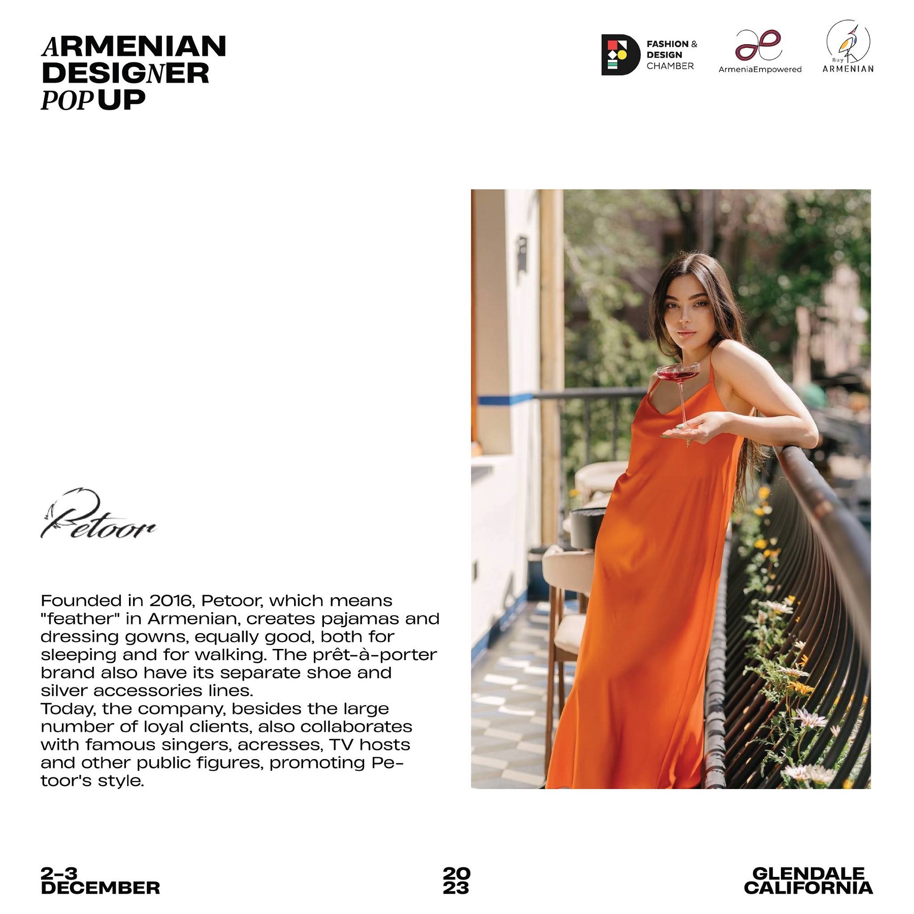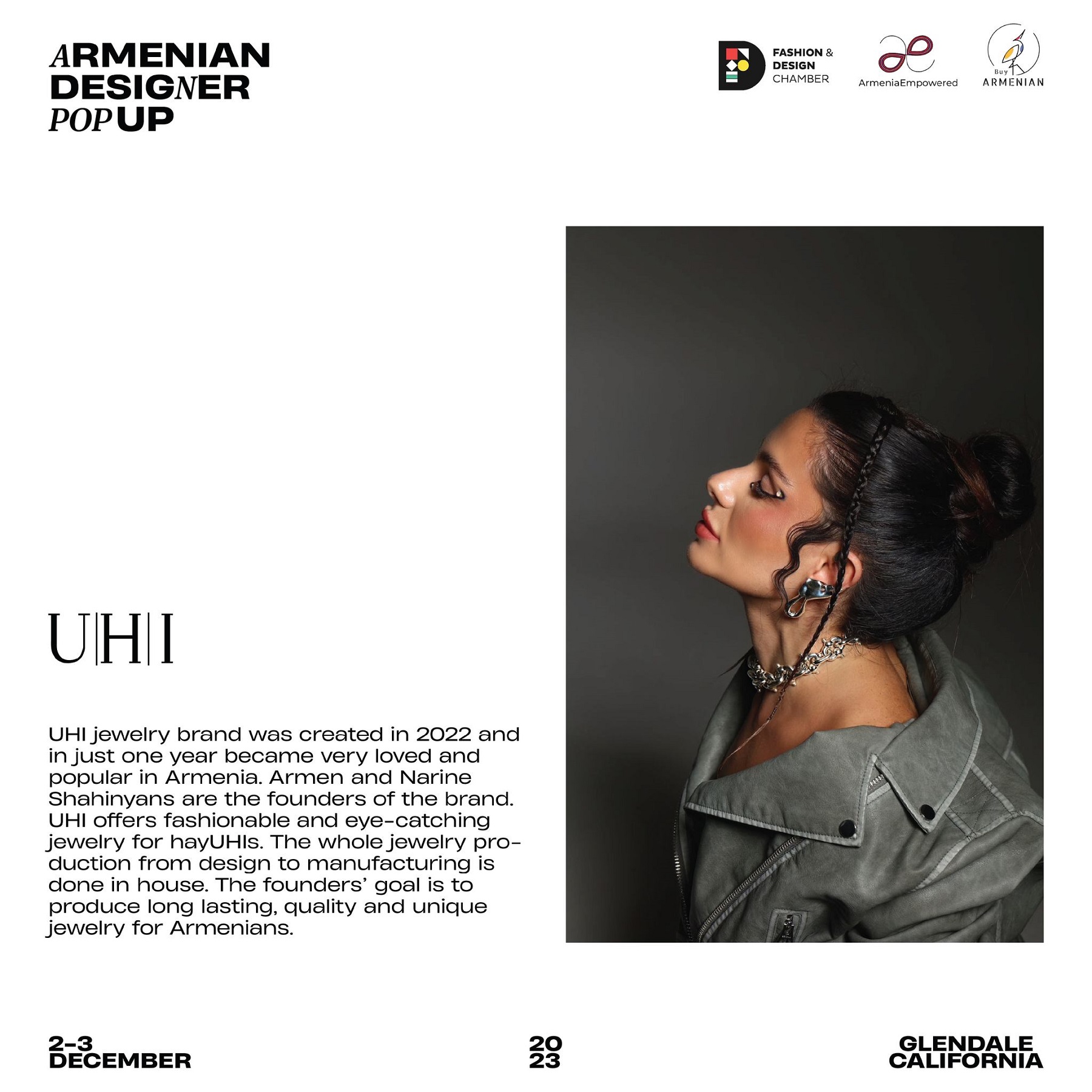 Armenian Fashion Takes Stage in the Heart of California! Date: December 2 & 3, 2023 Location: SOLAR STUDIOS, 3909 San Fernando Rd. Suite 114, Glendale, CA 91204. This event will bring together over 35 of Armenia's most talented designers. Meet your favorite designers and make unforgettable memories during weekend. Tickets are available here: https://www.eventbrite.com/.../armenian-designer-pop-up...