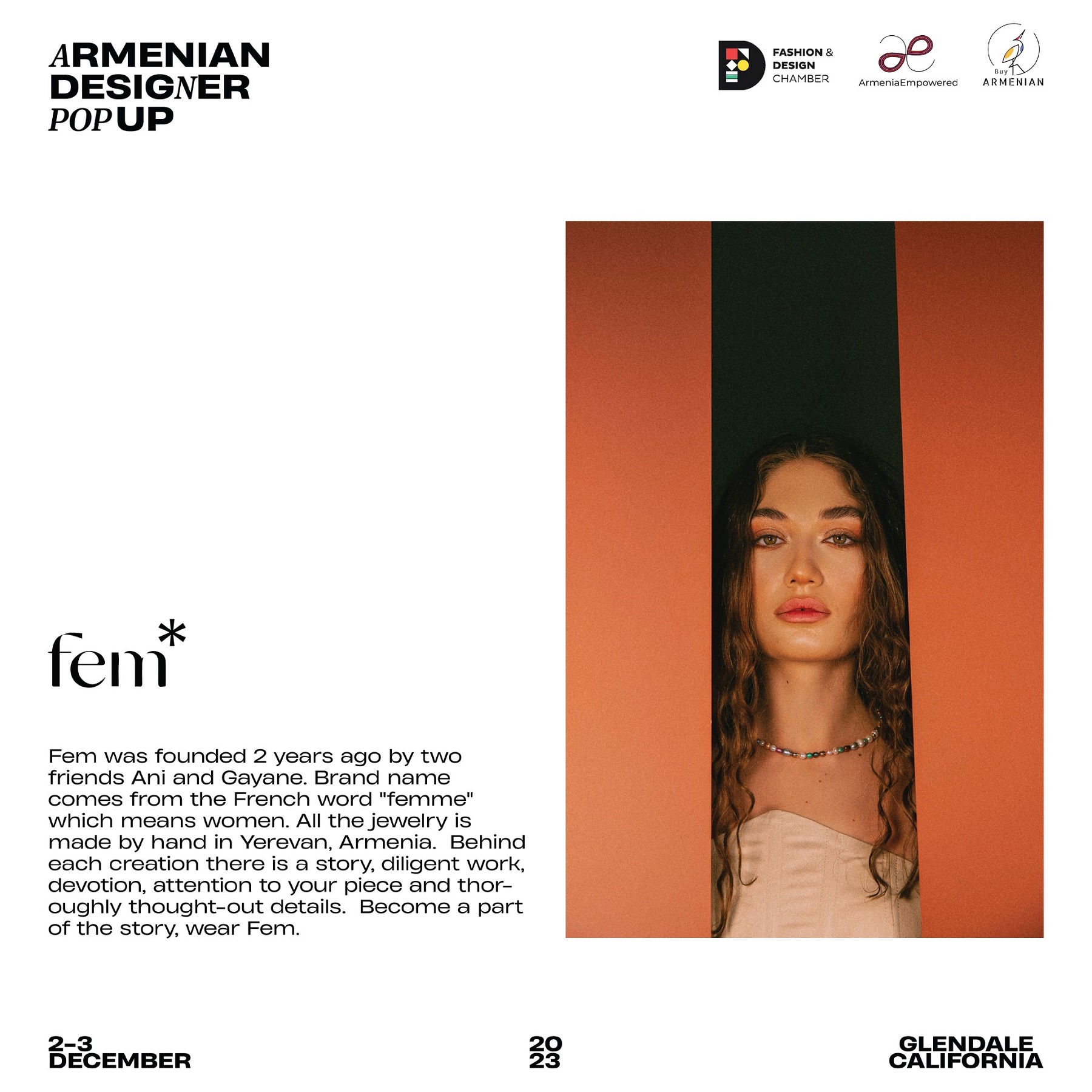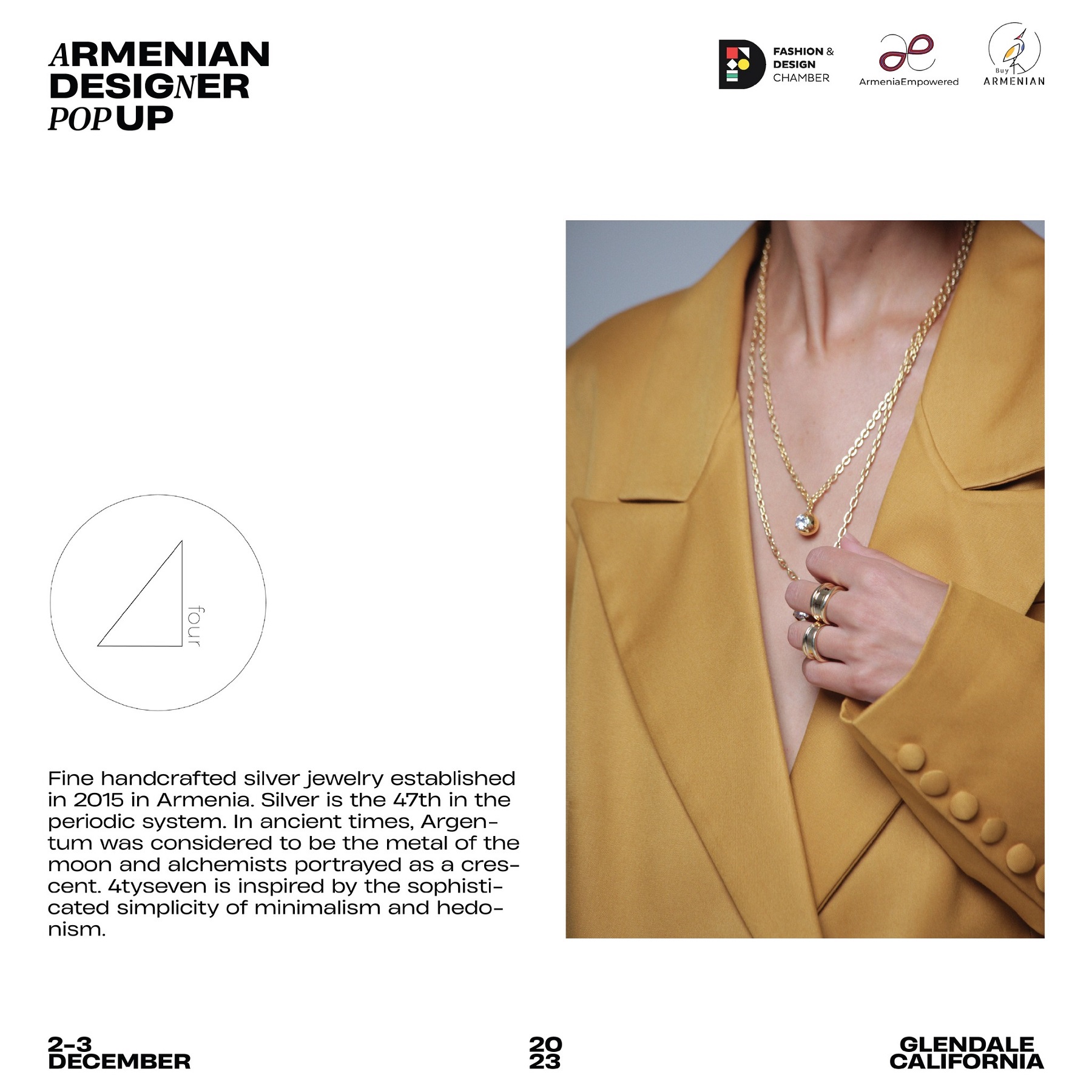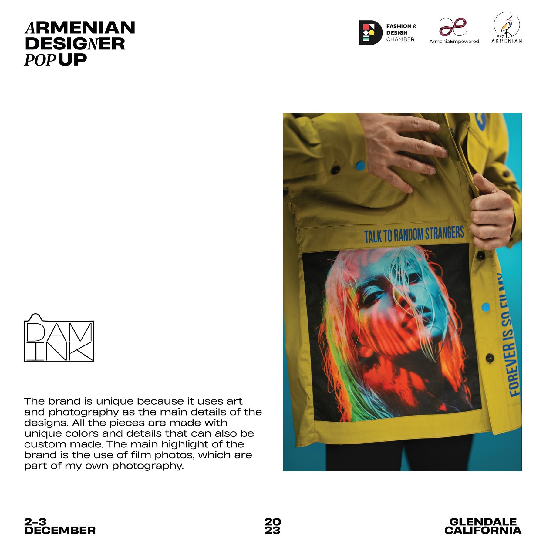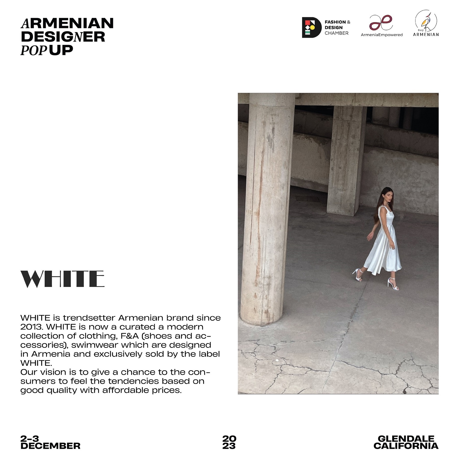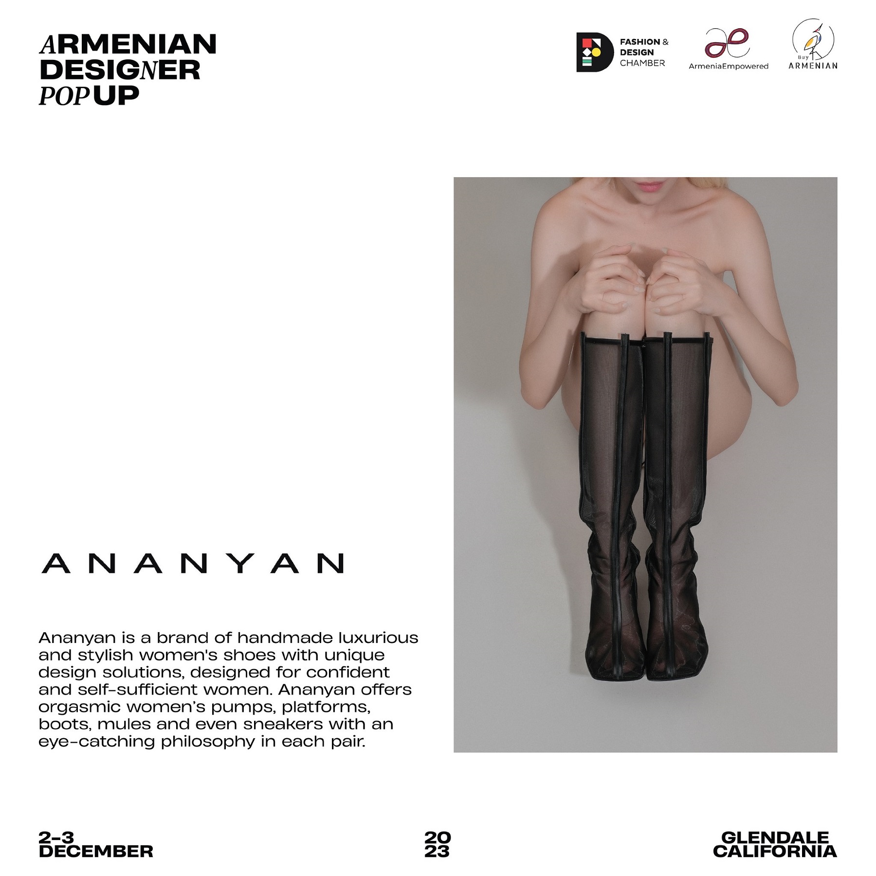 Armenian Fashion Takes Stage in the Heart of California! Date: December 2 & 3, 2023 Location: SOLAR STUDIOS, 3909 San Fernando Rd. Suite 114, Glendale, CA 91204. This event will bring together over 35 of Armenia's most talented designers. Meet your favorite designers and make unforgettable memories during weekend. Tickets are available here: https://www.eventbrite.com/.../armenian-designer-pop-up...