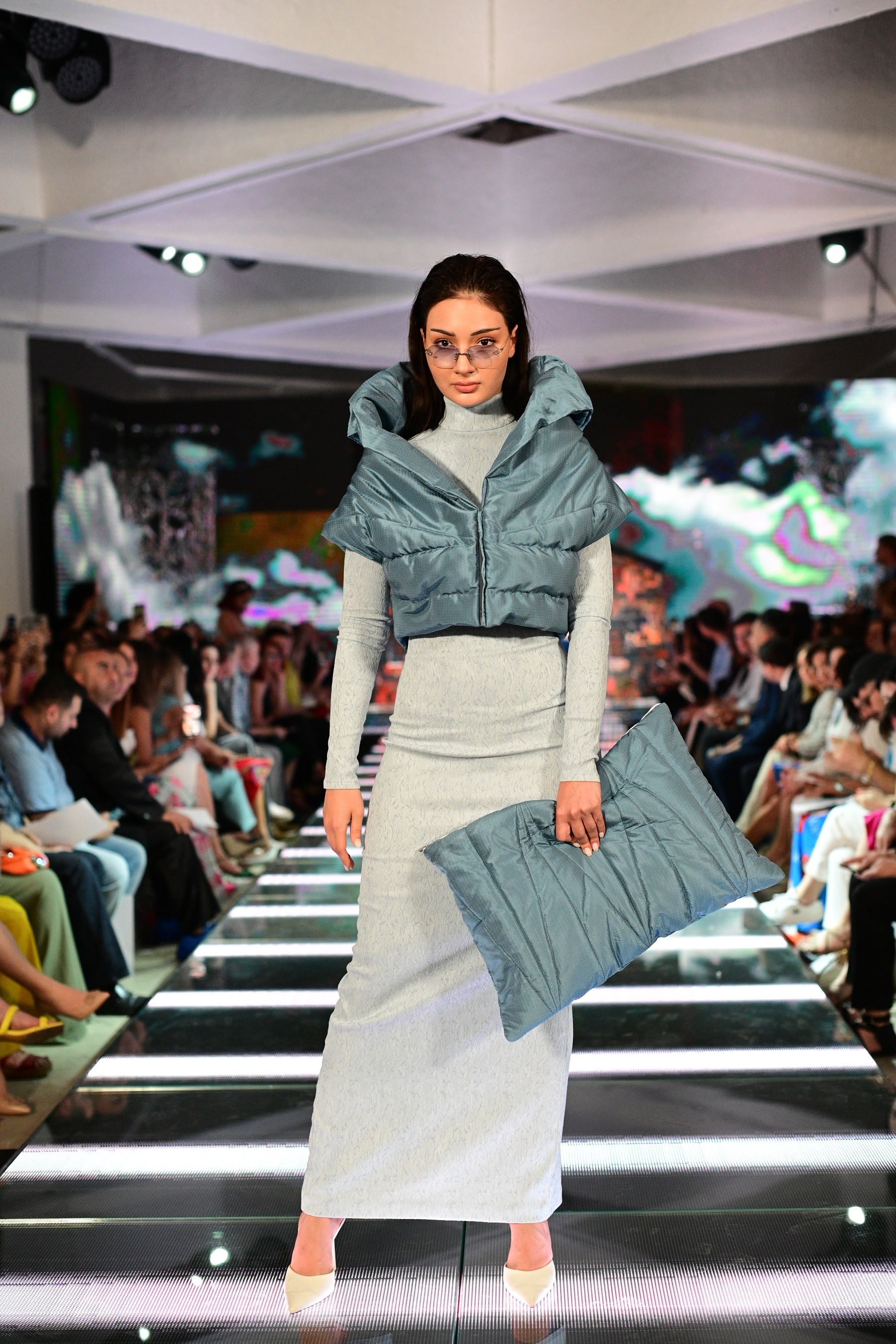 Gayane Ghazaryan’s collection was a testament to the fusion of Armenian architecture and avant-garde fashion. Inspired by the captivating colours and architectural elements of traditional stone buildings, Ghazaryan skilfully incorporated these influences into her colour scheme, creating a visually striking collection. However, it was her ability to draw inspiration from more contemporary surroundings that truly set her apart. One of her designs paid homage to the Karen Demirtchian Sport/Concert Complex, infusing a modern edge into the collection.