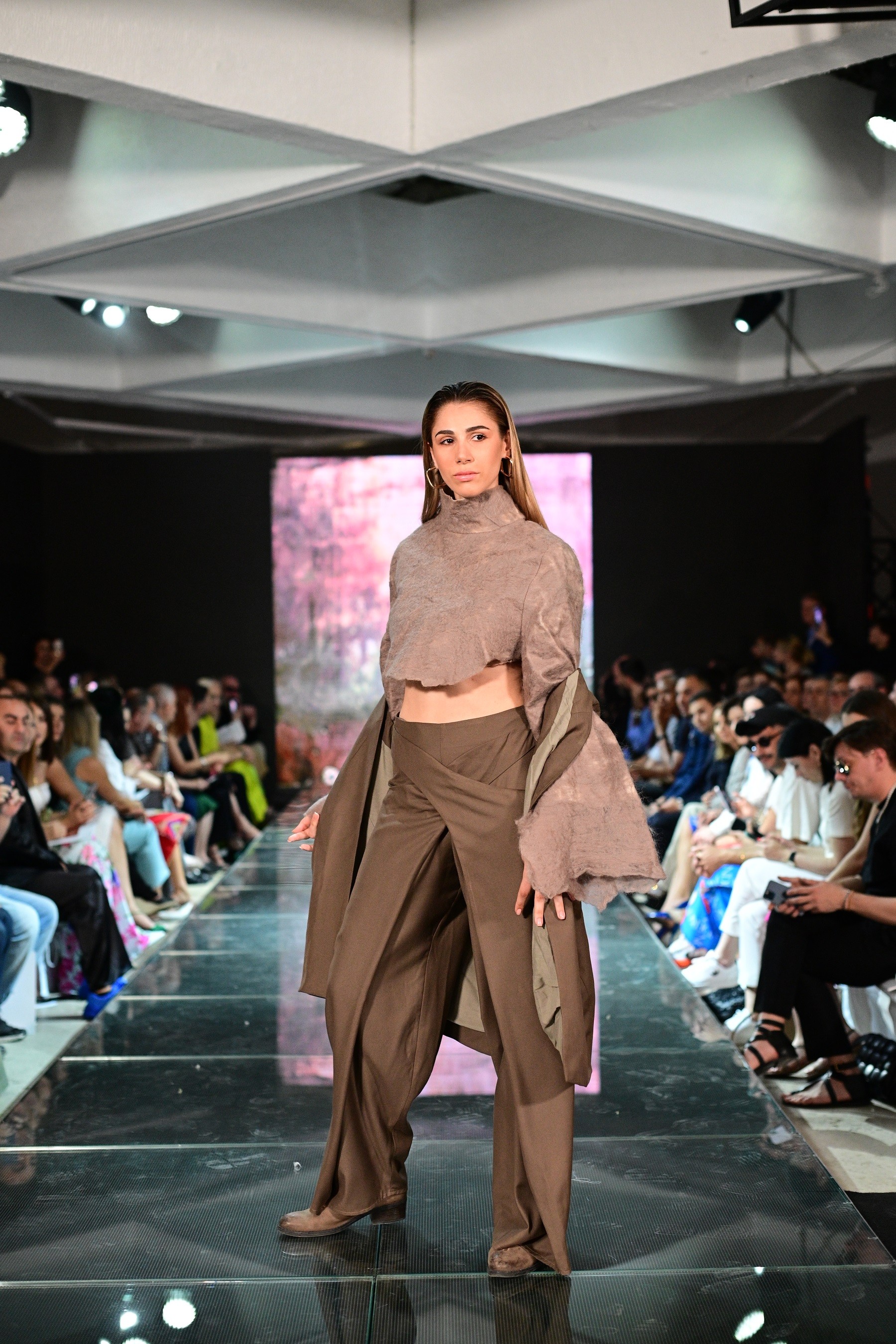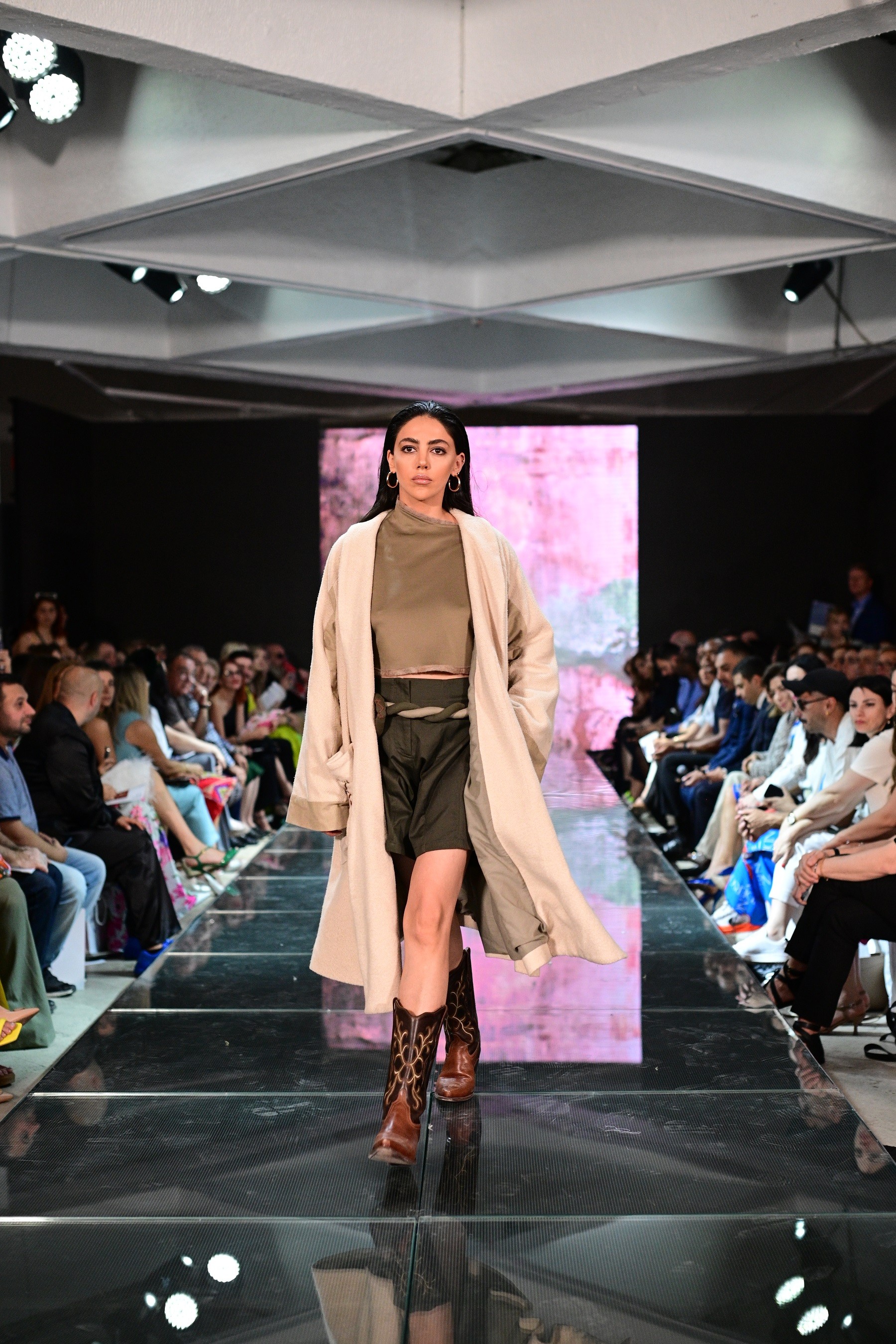 Knarik Karapetyan unveiled one of the more contemporary collections which captivated the audience as her models confidently strode down the runway. Her brand, aptly named Boldness, truly lived up to its name, with a vibrant colour palette and striking silhouettes that commanded attention.
