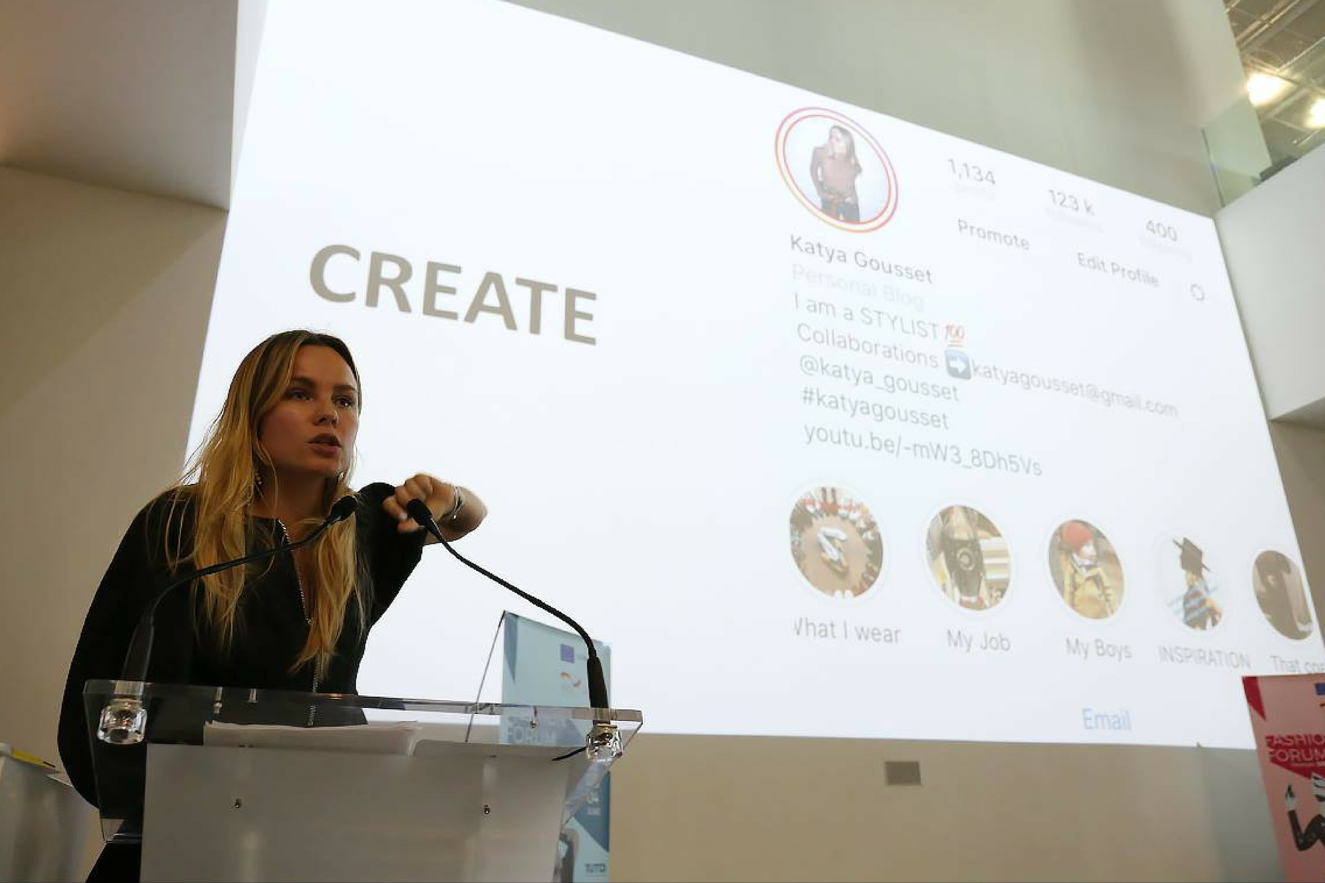 The list of speakers featured Adam Katz Sinding (famouss street fashion photographer, USA), Gwyneth Holland (trend consultant, writter, lecturer at Westminster Univerity, UK), Andrea Bruno (strategic director of textile and fashion department at Istituto d'Arte Applicata e design Torino, Italy), Camille Boyer and Marlene Agrieter (Austrian Fashion Association, Austria), Katya Gousset (Instagram influencer, fashion blogger, stylist), Anton Yeremenko (fashion editor at Harper's Bazaar, Ukraine), Maxim Getman (fashion photographer, Ukraine), Lucine Ayanian (founder of HAY-HAY.CO, marketing expert, stylist, Switzerland), Xenya Cherny (Eco-Age Ambassador, founder of Green Stilettos), Anastasia Hetman (model, KModel Agency Ukraine).